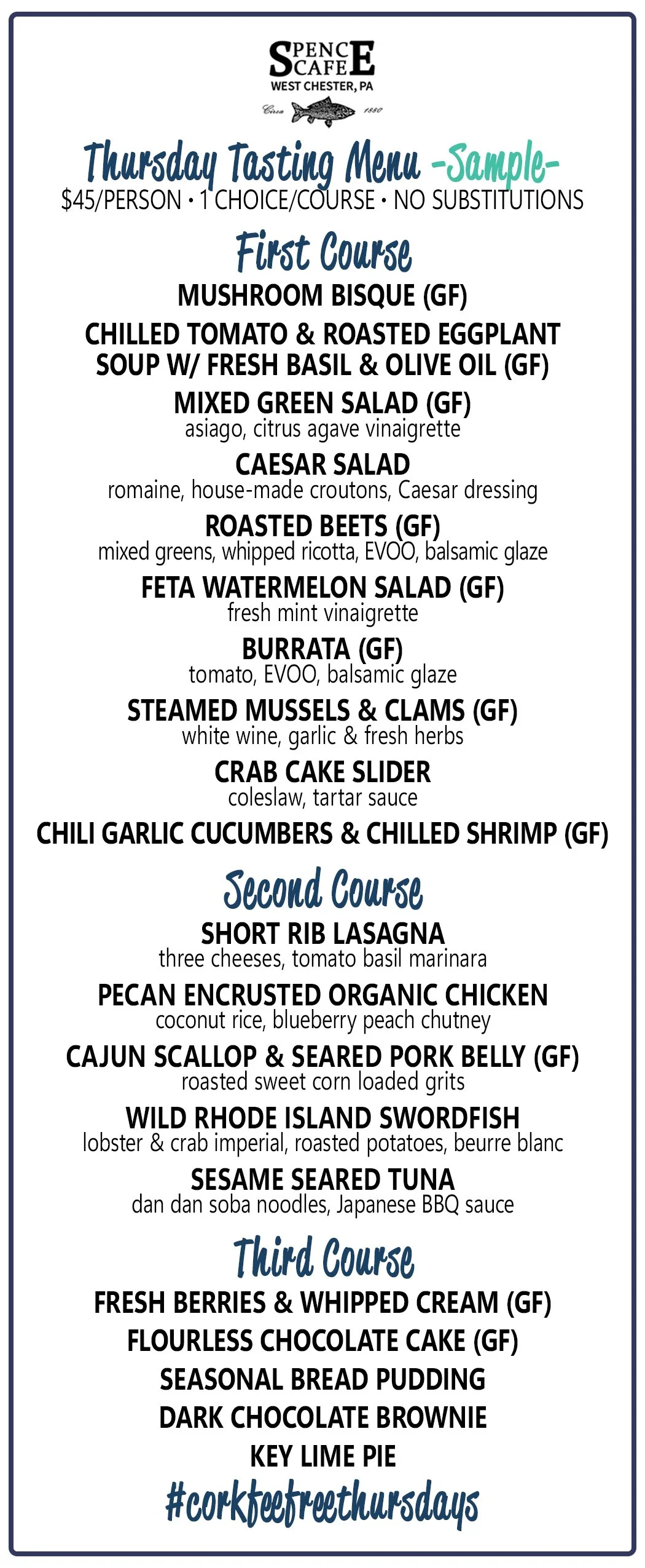 Located in downtown West Chester, PA Spence Café is a BYOB & purveyor of New American cuisine from Chef Andrew Patten.