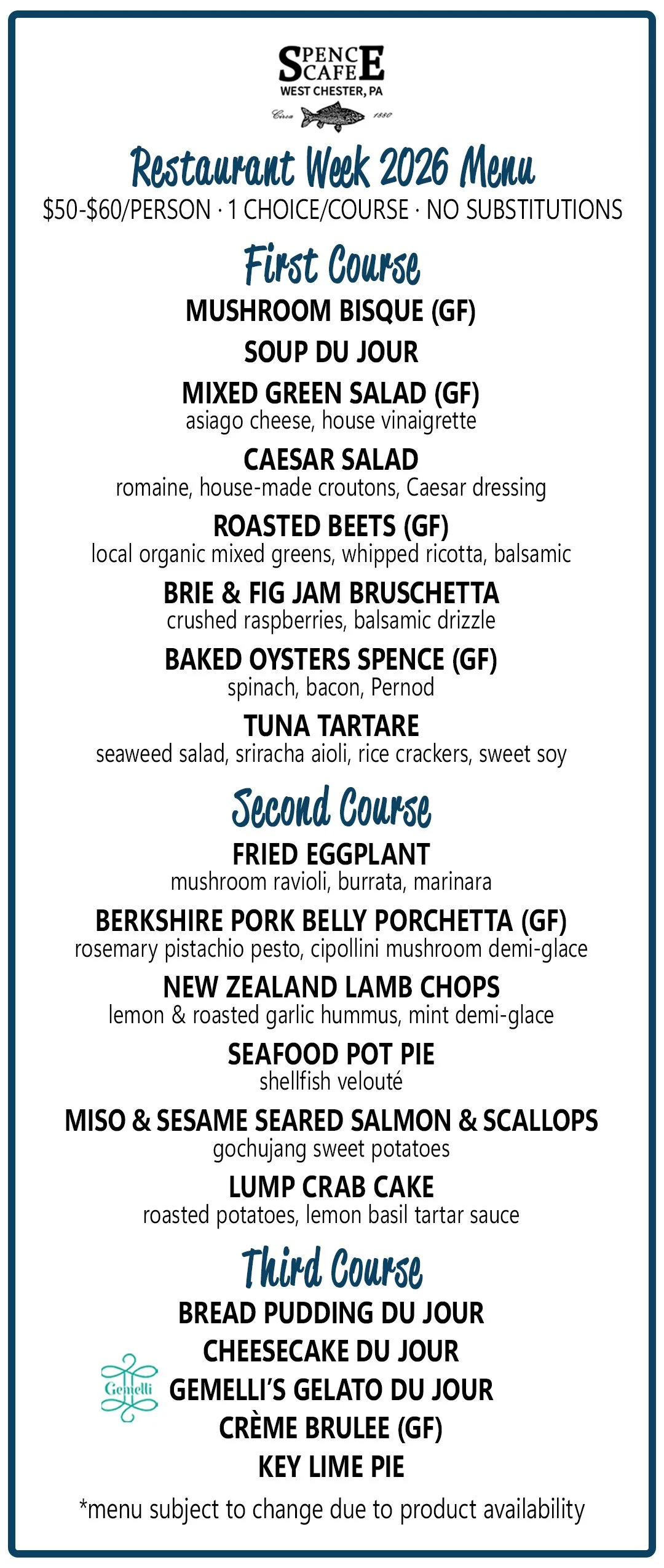 Located in downtown West Chester, PA Spence Café is a BYOB & purveyor of New American cuisine from Chef Andrew Patten.